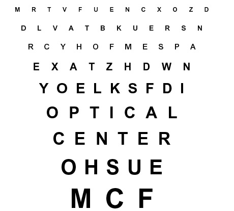 Sit or stand around 1.50m from your screen, cover one eye with your hand and try to read the letters from the bottom up to the last line at the top. Repeat the test covering the opposite eye.
